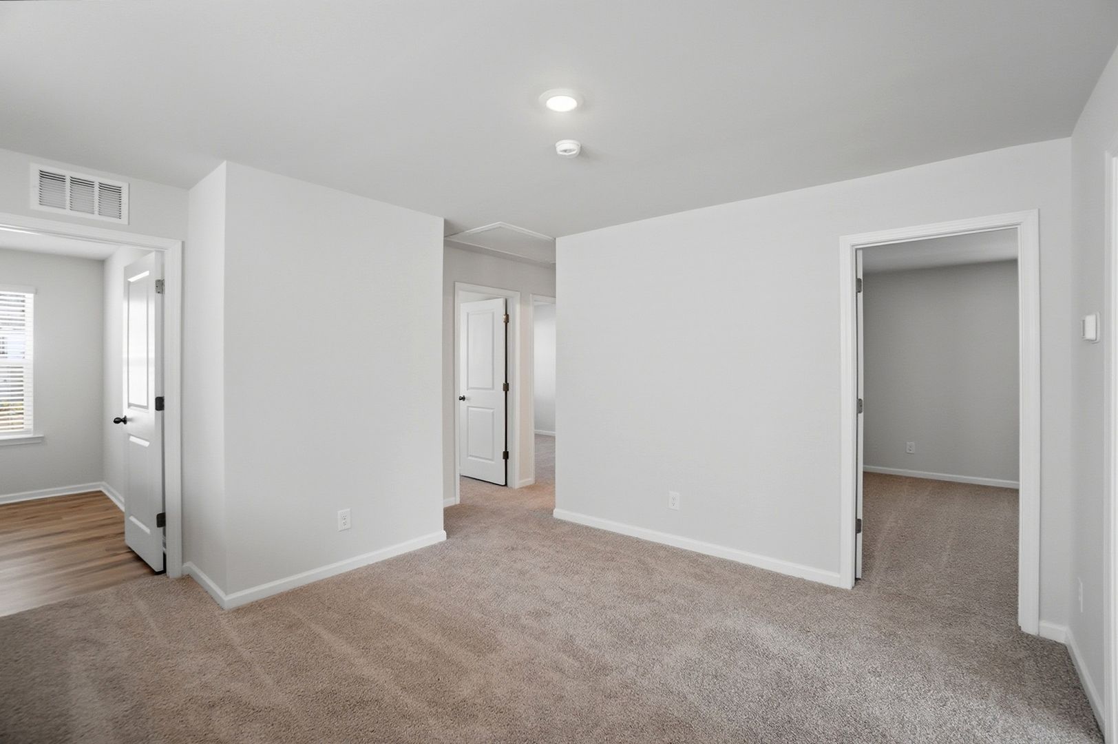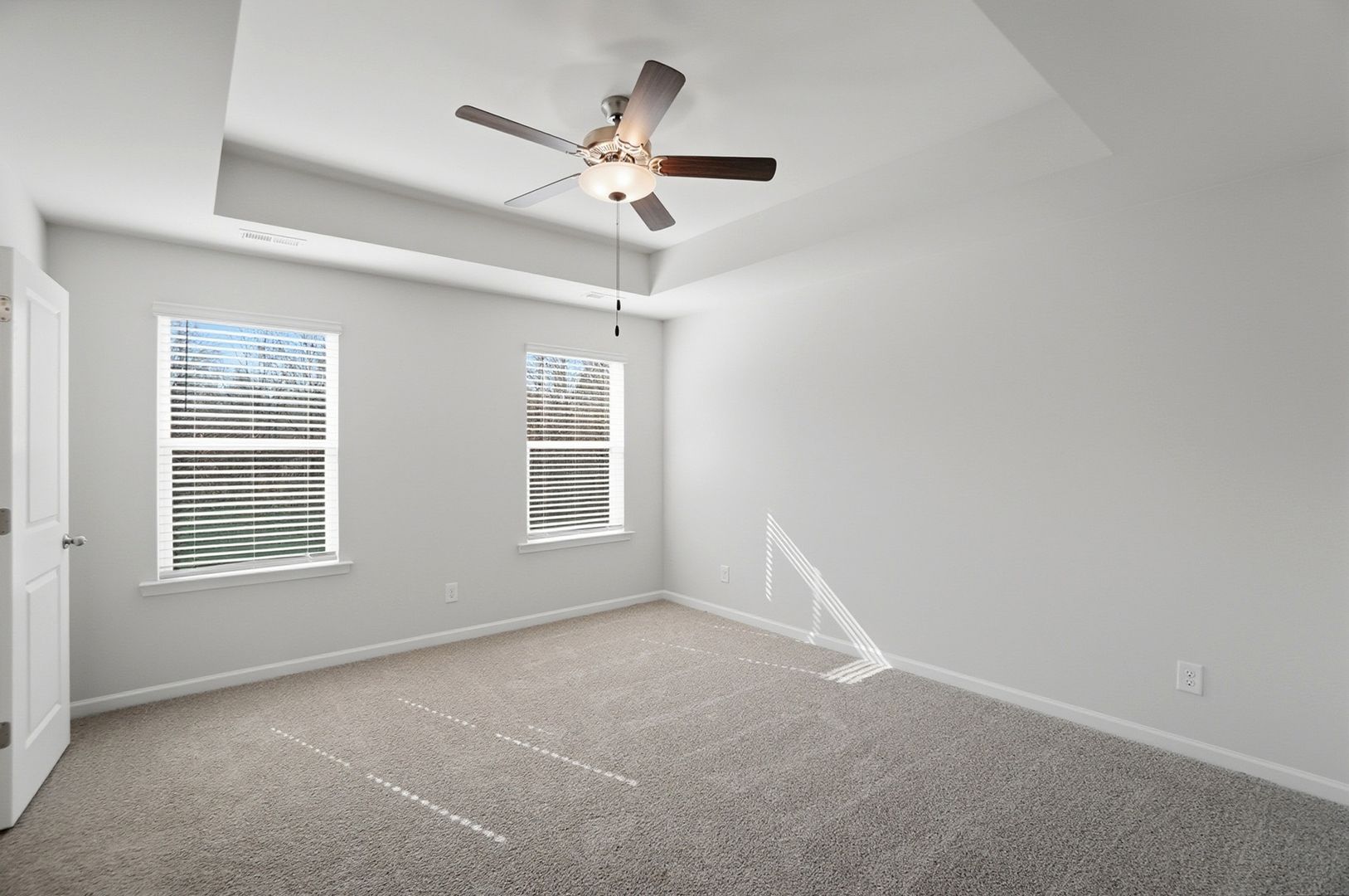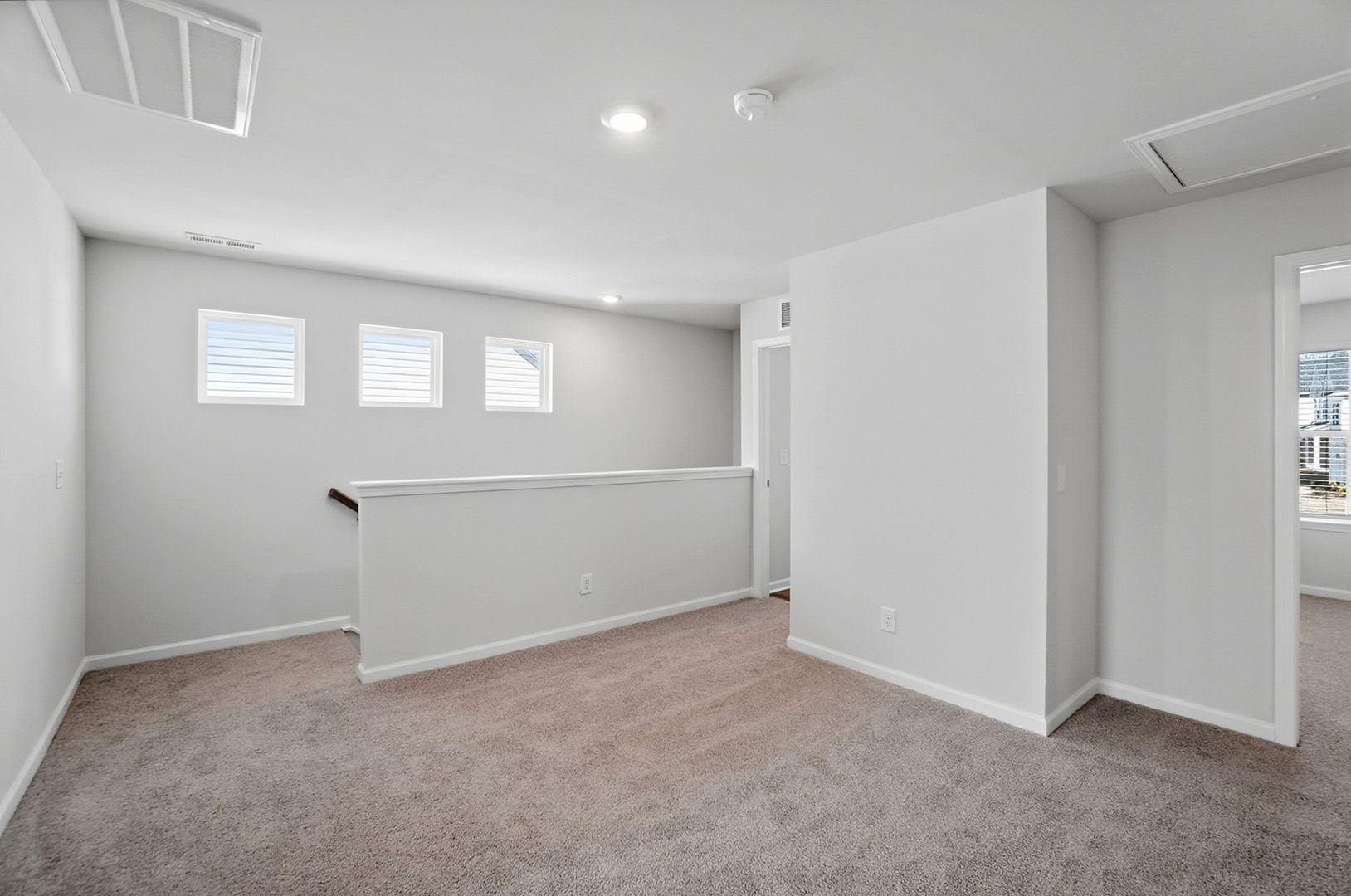 Upstairs, all four bedrooms are thoughtfully positioned, including a spacious primary suite featuring a tray ceiling, walk-in closet, and a beautifully finished en-suite bath with dual vanity and tiled shower. The secondary bedrooms are generously sized and share a well-appointed full bath. A versatile loft area sits between the bedrooms, offering flexible space for a home office, playroom, or additional lounge area. The upstairs laundry room includes a washer and dryer for added convenience.
