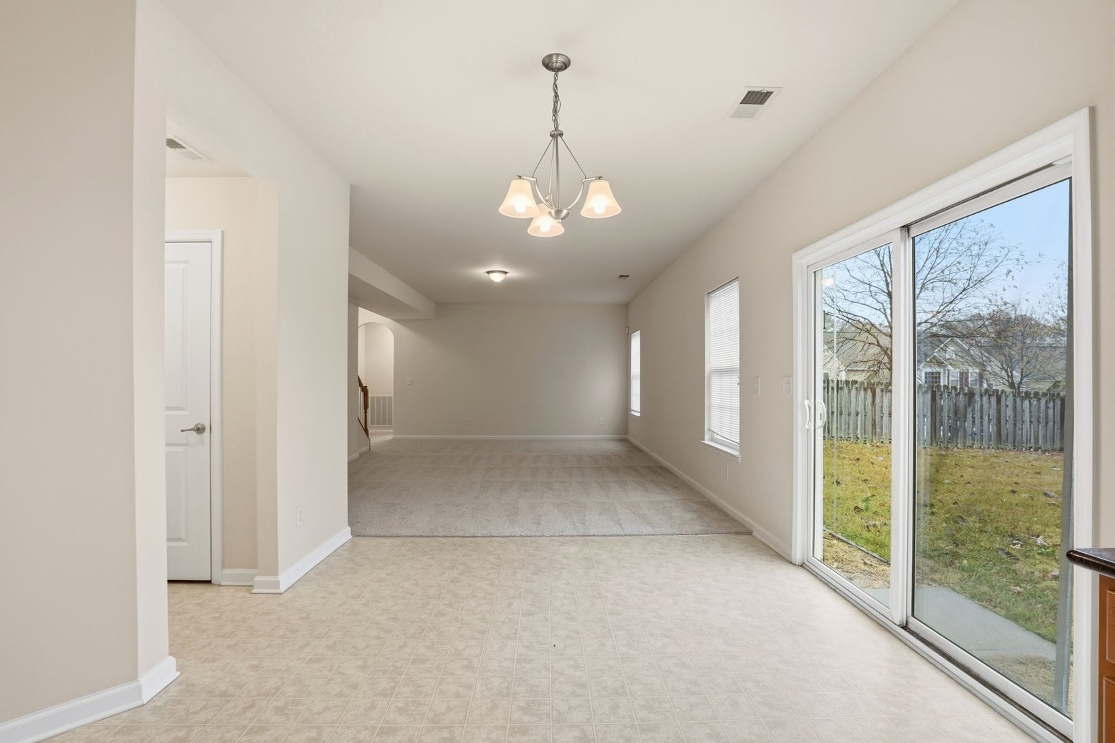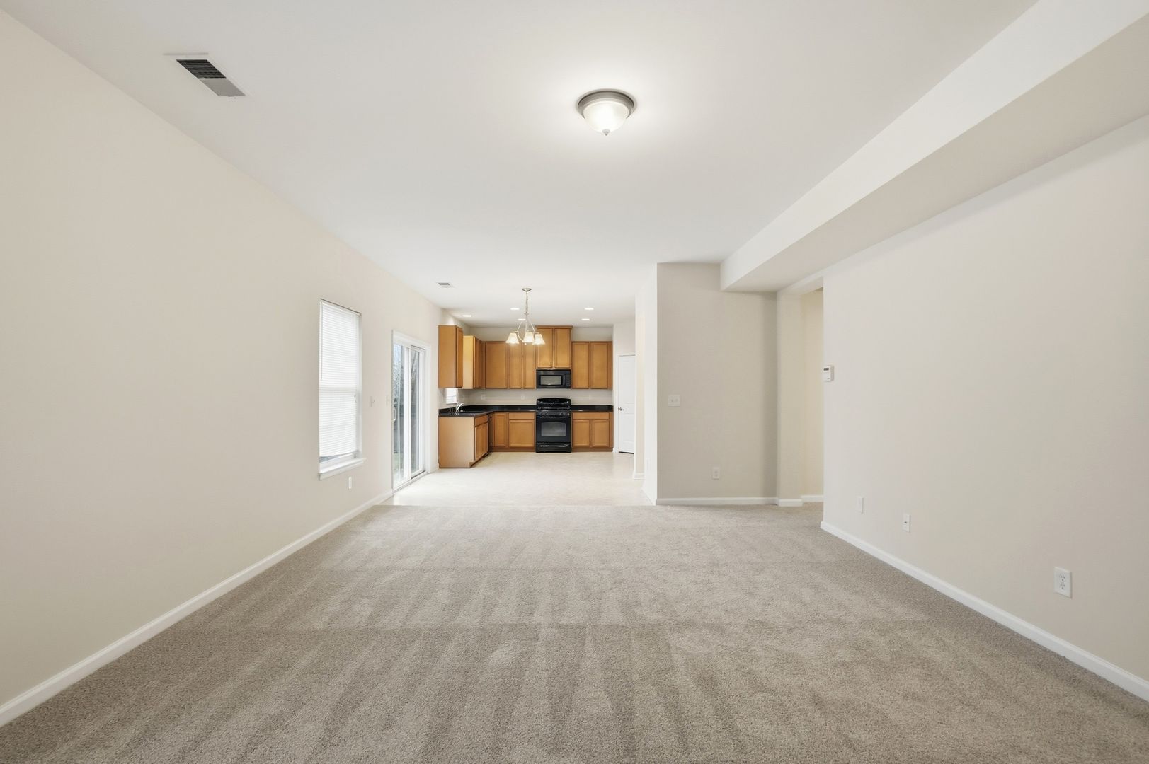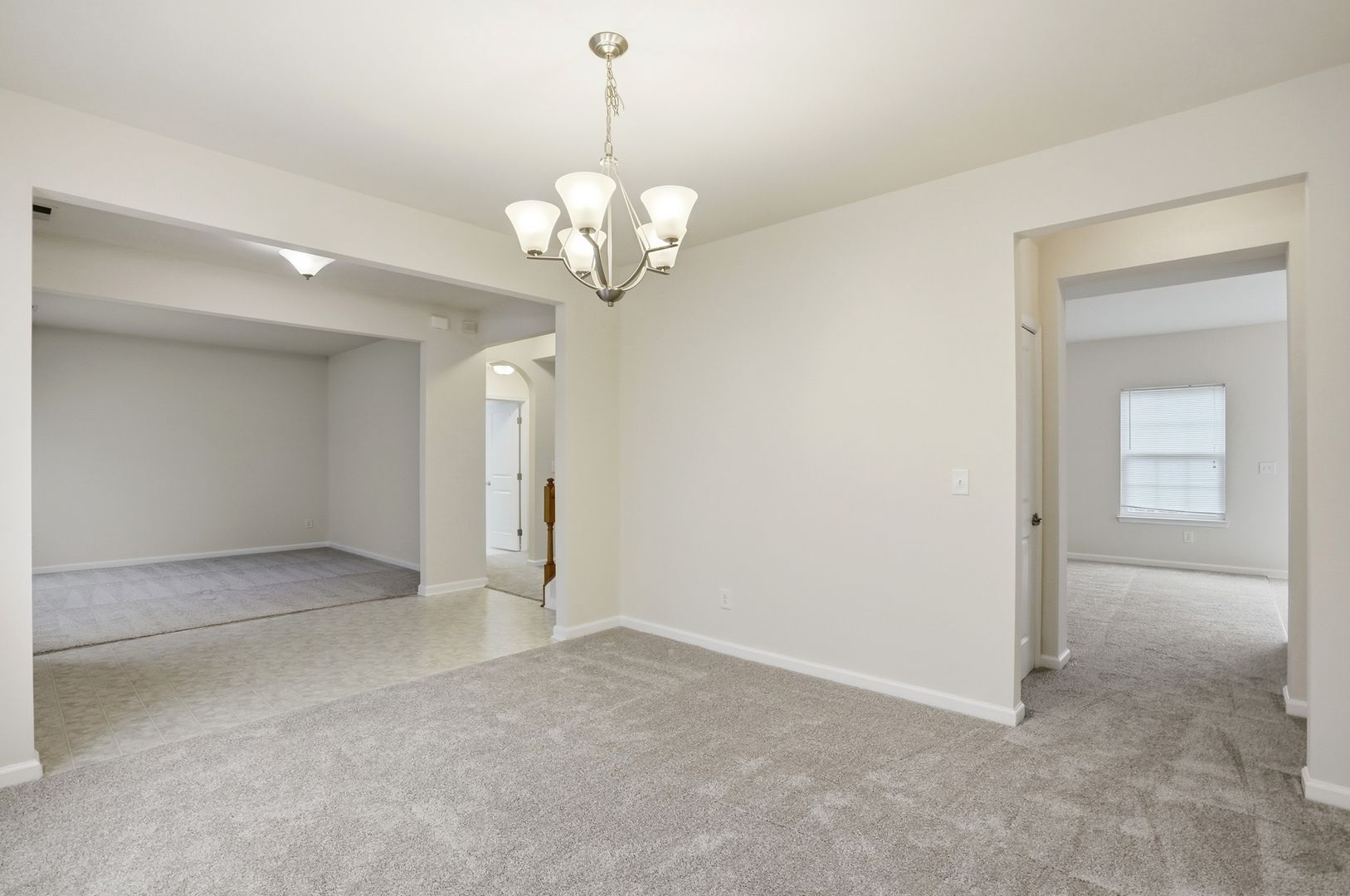 Upstairs, you'll find a versatile bonus room, a large primary bedroom, and three additional bedrooms, along with a laundry room and a convenient linen closet—all enhanced by new carpet. Additional highlights include a 2-car garage with storage shelving and a fenced backyard. Ideally located near UNCC and Concord with quick access to I-485. Available immediately.