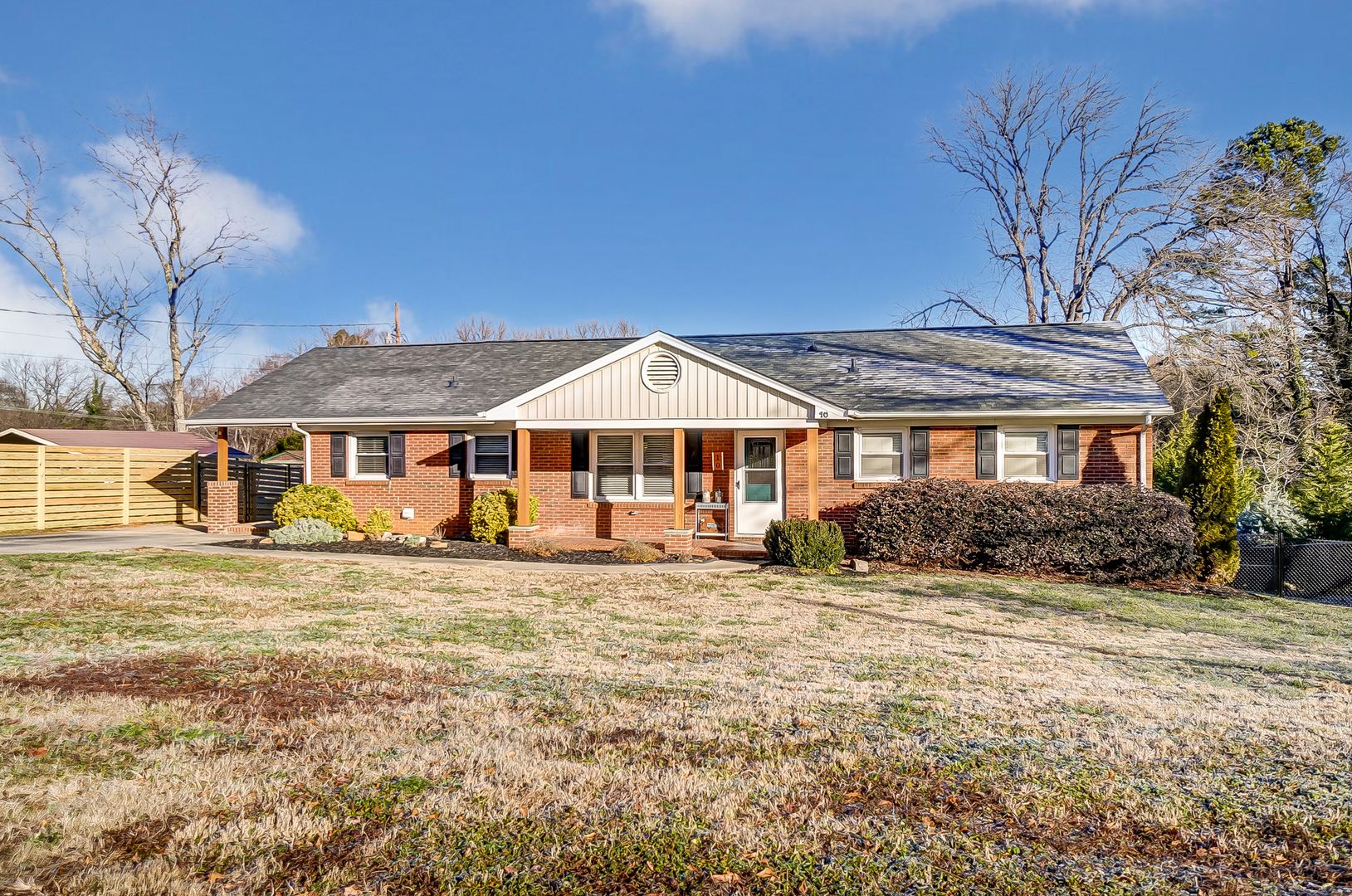 This stunning ranch home in Belmont has been beautifully updated, offering the perfect blend of modern comfort and outdoor charm. You'll be greeted by a welcoming front porch that leads to a spacious dining room, featuring beautiful hardwood floors. The dining area flows into a large living room, highlighted by a stylish shiplap accent wall and French doors that open to an expansive deck, providing a picturesque view of the meticulously landscaped backyard. The open kitchen is a chef's dream, equipped with custom cabinetry, stainless steel appliances, subway tile backsplash, and granite countertops. The primary suite features vaulted ceilings, a large walk-in closet, and a spa-like en suite bath with dual vanity sinks and a gorgeous walk-in shower. The split-bedroom floor plan includes three generously sized bedrooms on the other side of the home, each offering ample closet space. A large laundry room with built-ins and additional storage off the kitchen add convenience and functionality. The expansive backyard is an entertainer's paradise, complete with custom stone walkways, a firepit, a large shed, and a playground set, and COMPLETELY FENCED IN creating a peaceful backyard retreat. Whether relaxing on the inviting covered front porch, the cozy side porch, or the large perched deck, there are plenty of spots to unwind.