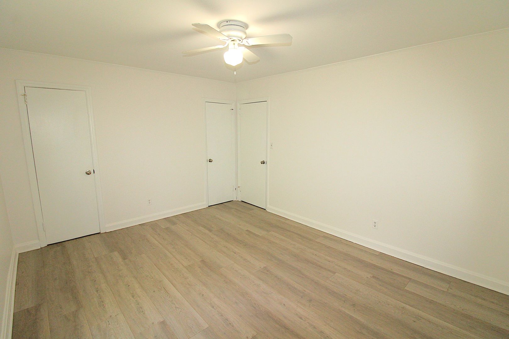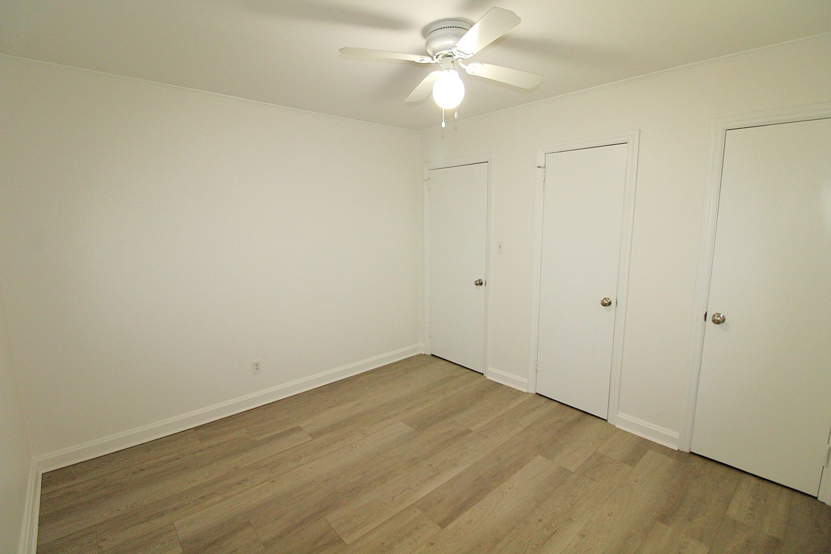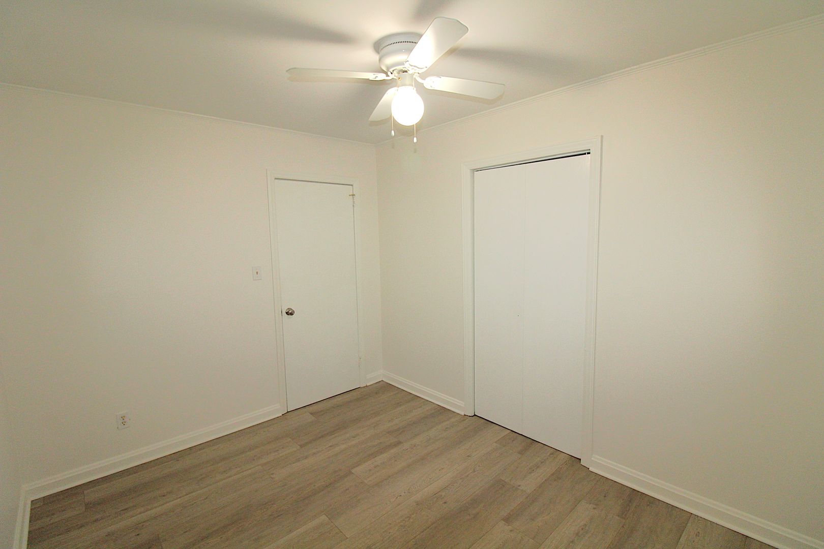 All three bedrooms are generously sized, featuring ceiling fans and great closet space. The updated bathroom offers a clean, modern finish with new fixtures and a tub/shower combination.