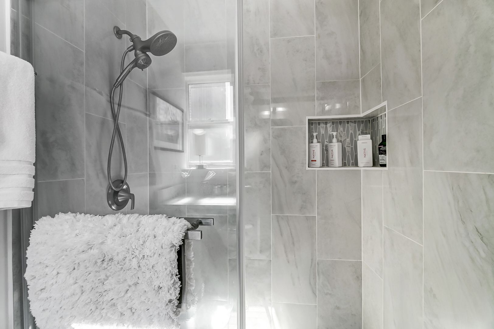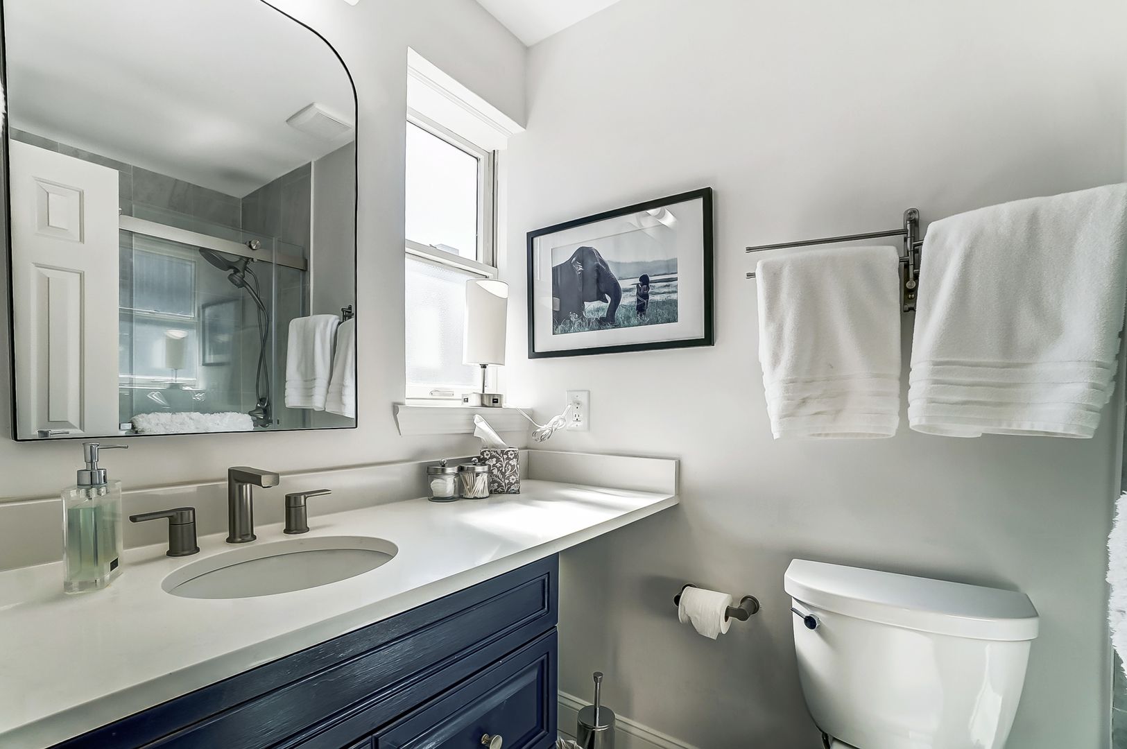 Upstairs, you’ll find two generously sized primary bedrooms, each with updated ensuite bathrooms. An in-unit washer and dryer add to your convenience.