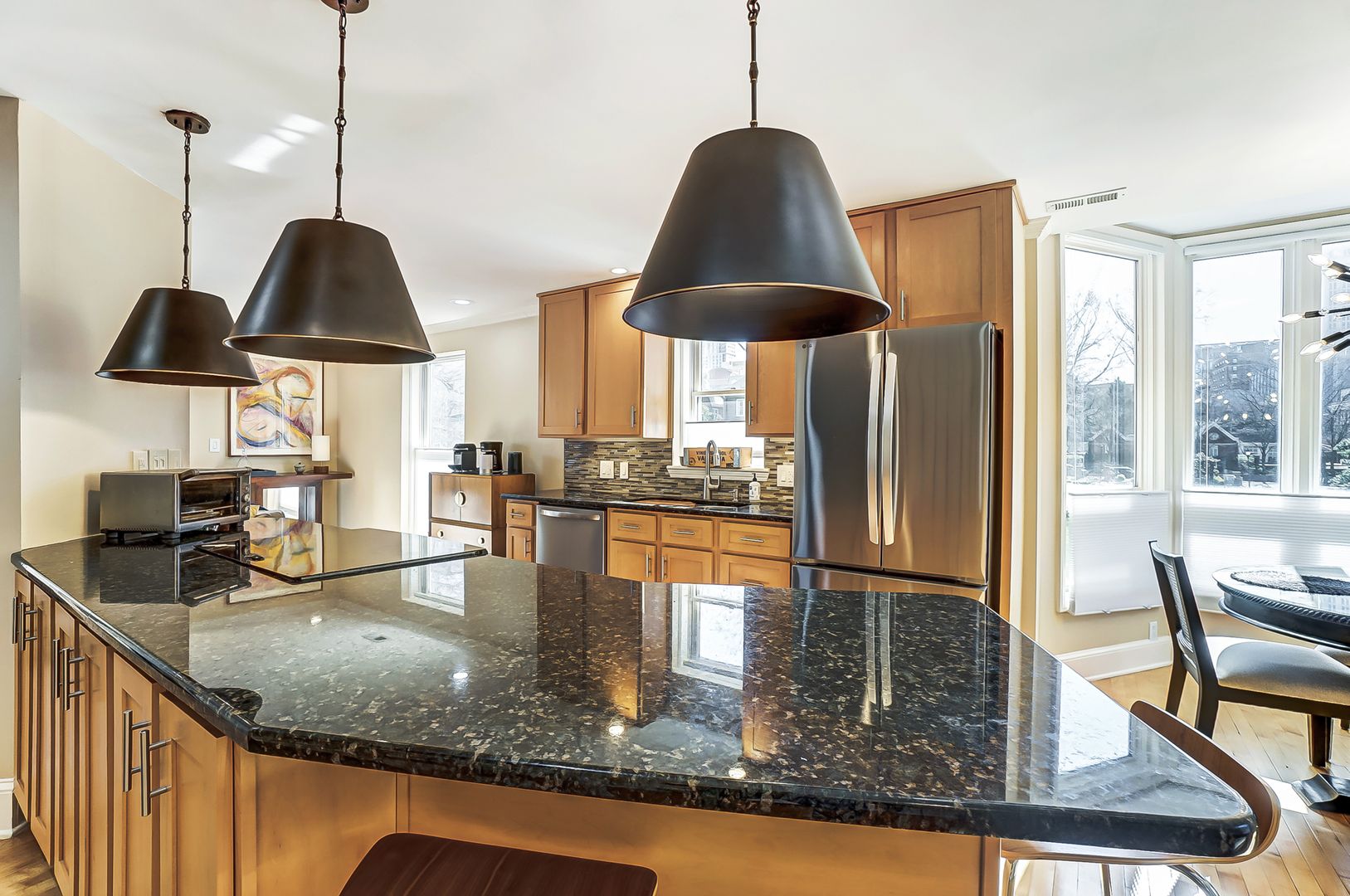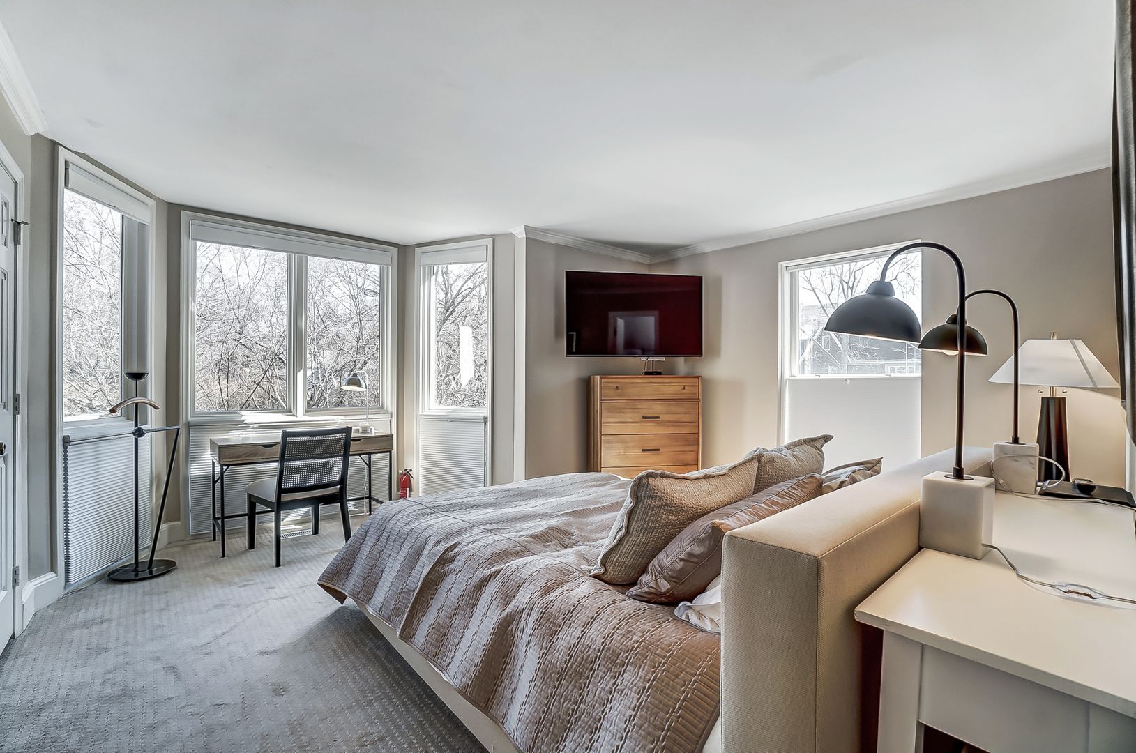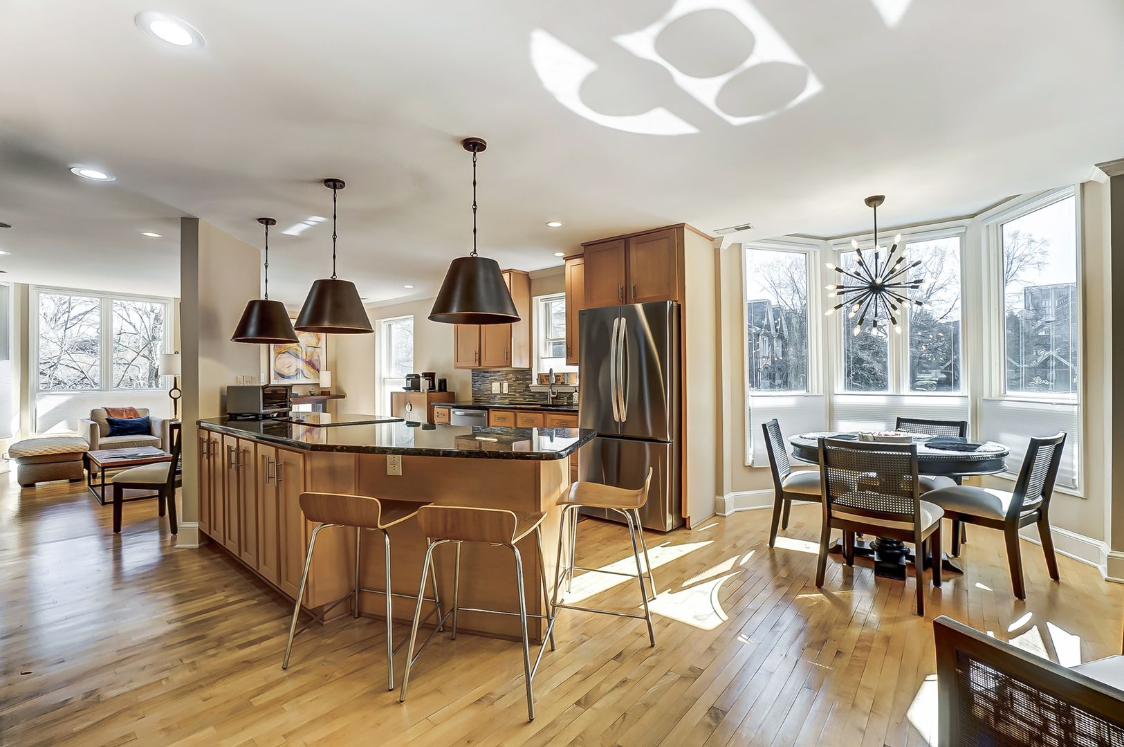 Step inside this spacious 2-story unit and be welcomed by gleaming hardwood floors and an open-concept floor plan. The updated kitchen is a chef’s dream, featuring a large island, granite countertops, and sleek stainless steel appliances. A cozy breakfast nook off the kitchen is perfect for morning meals. Natural light flows through multiple bay windows and custom window treatments, showcasing the breathtaking park and skyline views. The living room provides a relaxing retreat with a wood-burning fireplace and a bay window that opens to your private balcony overlooking the park.