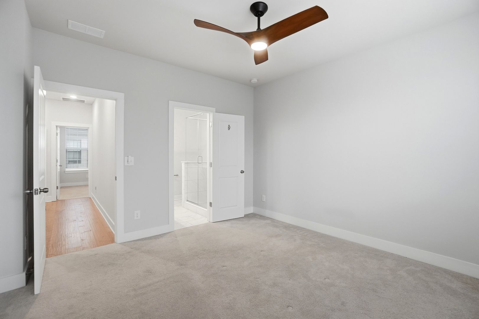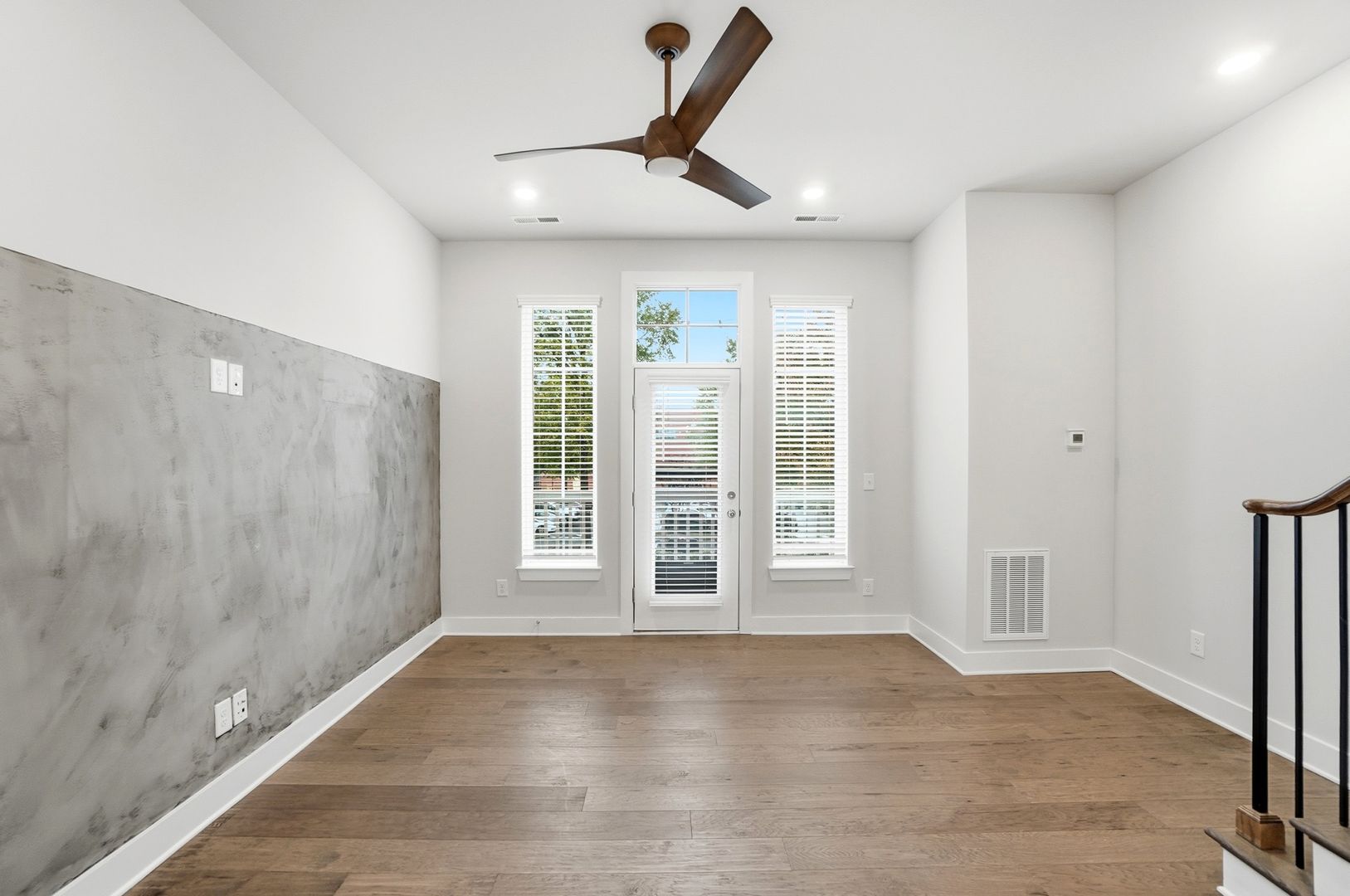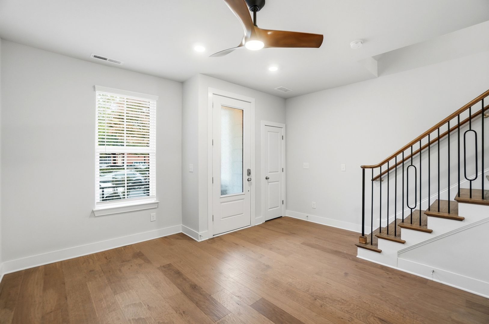 On the entry level, a flex space provides versatility for a home office, study, or gym. Upstairs, you’ll find two private bedroom suites, each with its own bath, plus a laundry area with washer/dryer included. The primary suite includes a spa-inspired bath, custom closet, and city views.
