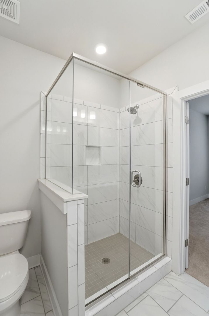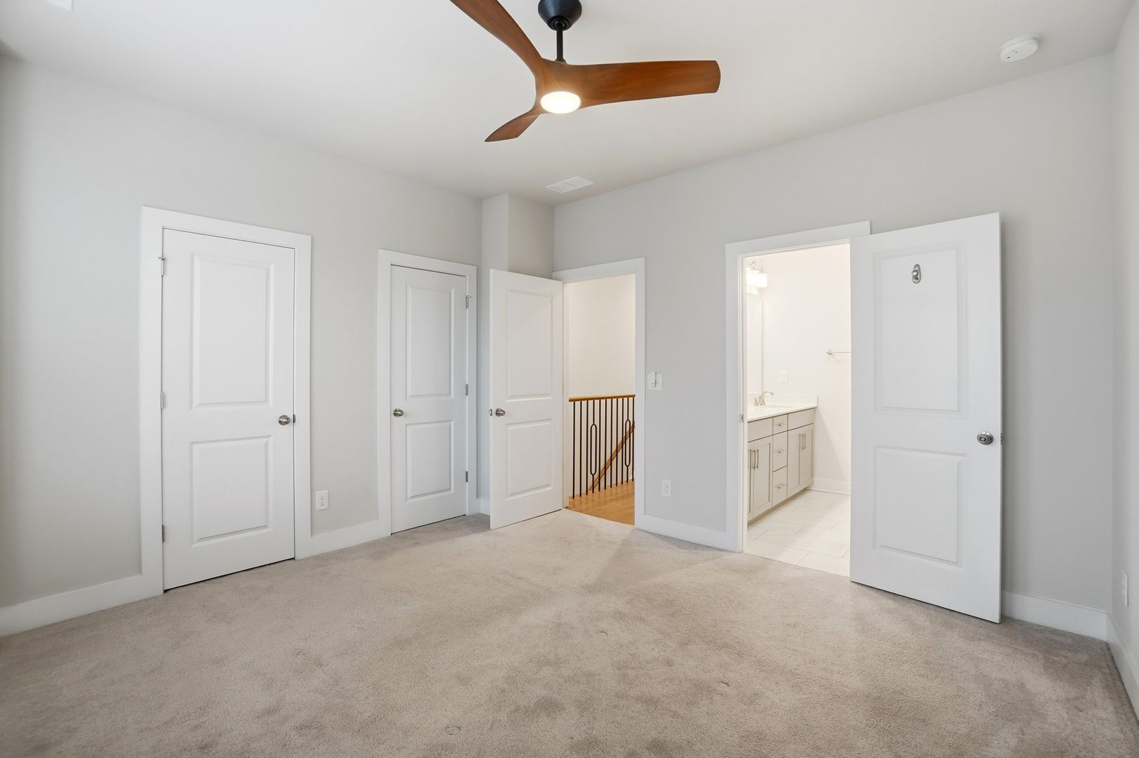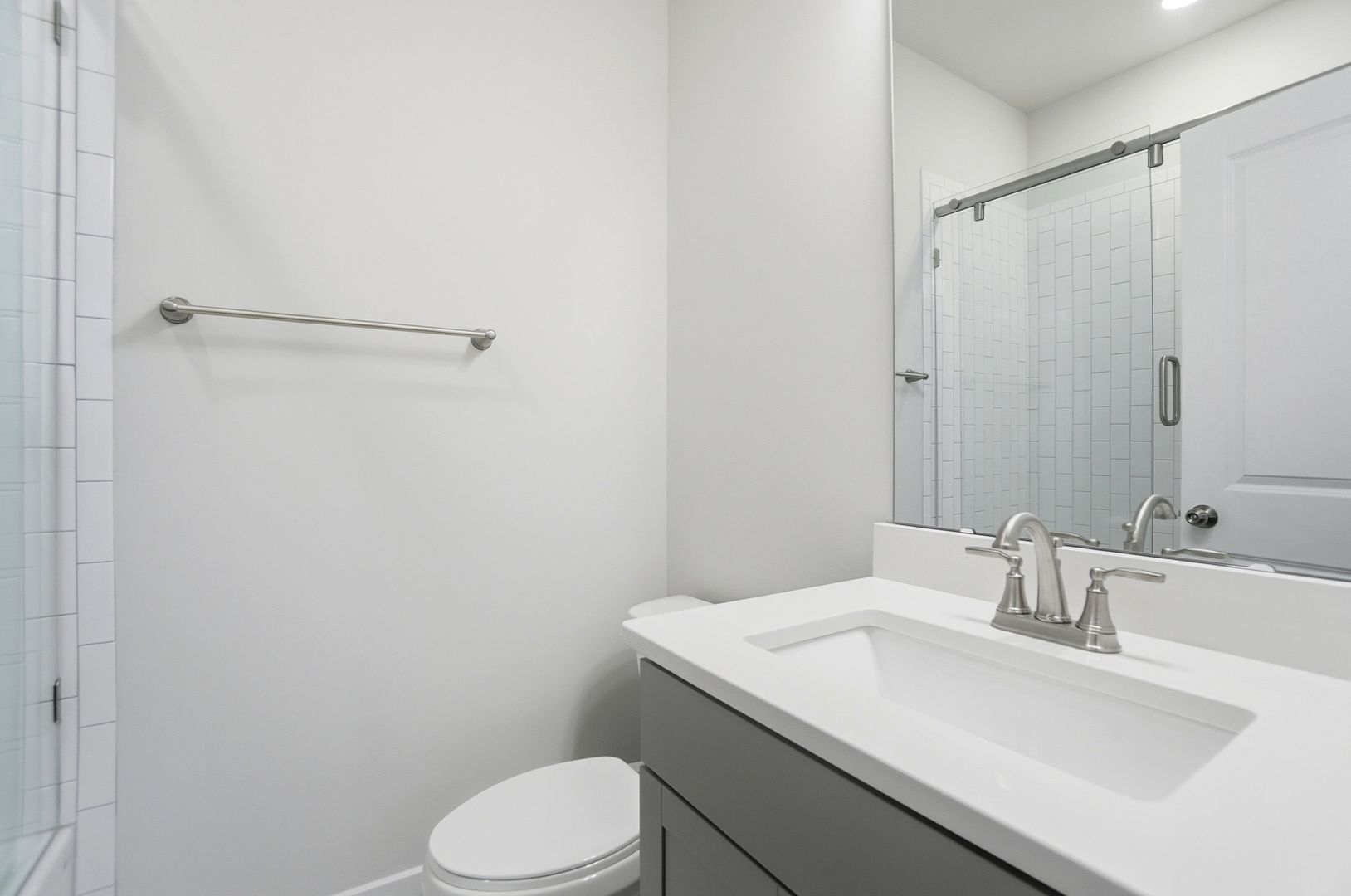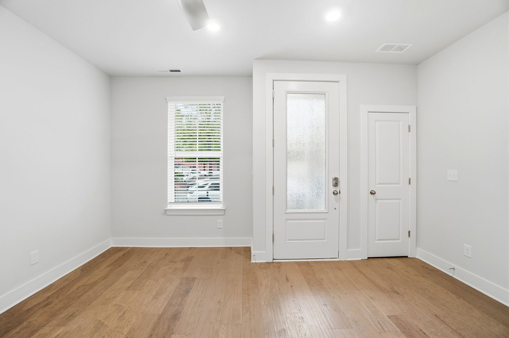 On the entry level, a flex space provides versatility for a home office, study, or gym. Upstairs, you’ll find two private bedroom suites, each with its own bath, plus a laundry area with washer/dryer included. The primary suite includes a spa-inspired bath, custom closet, and city views.