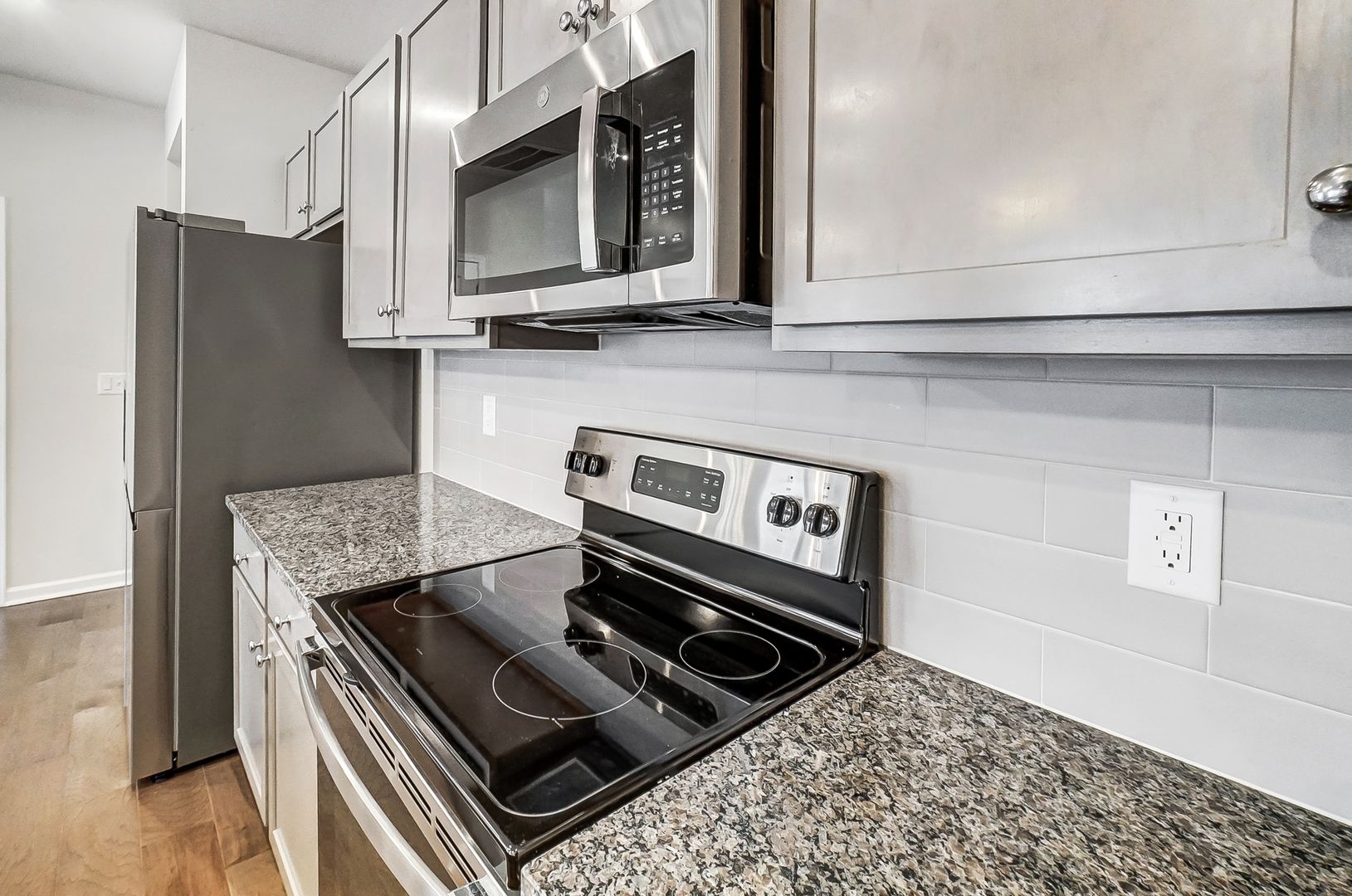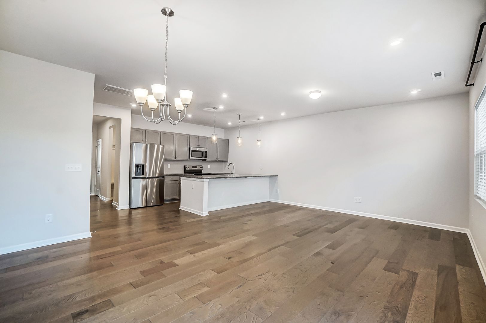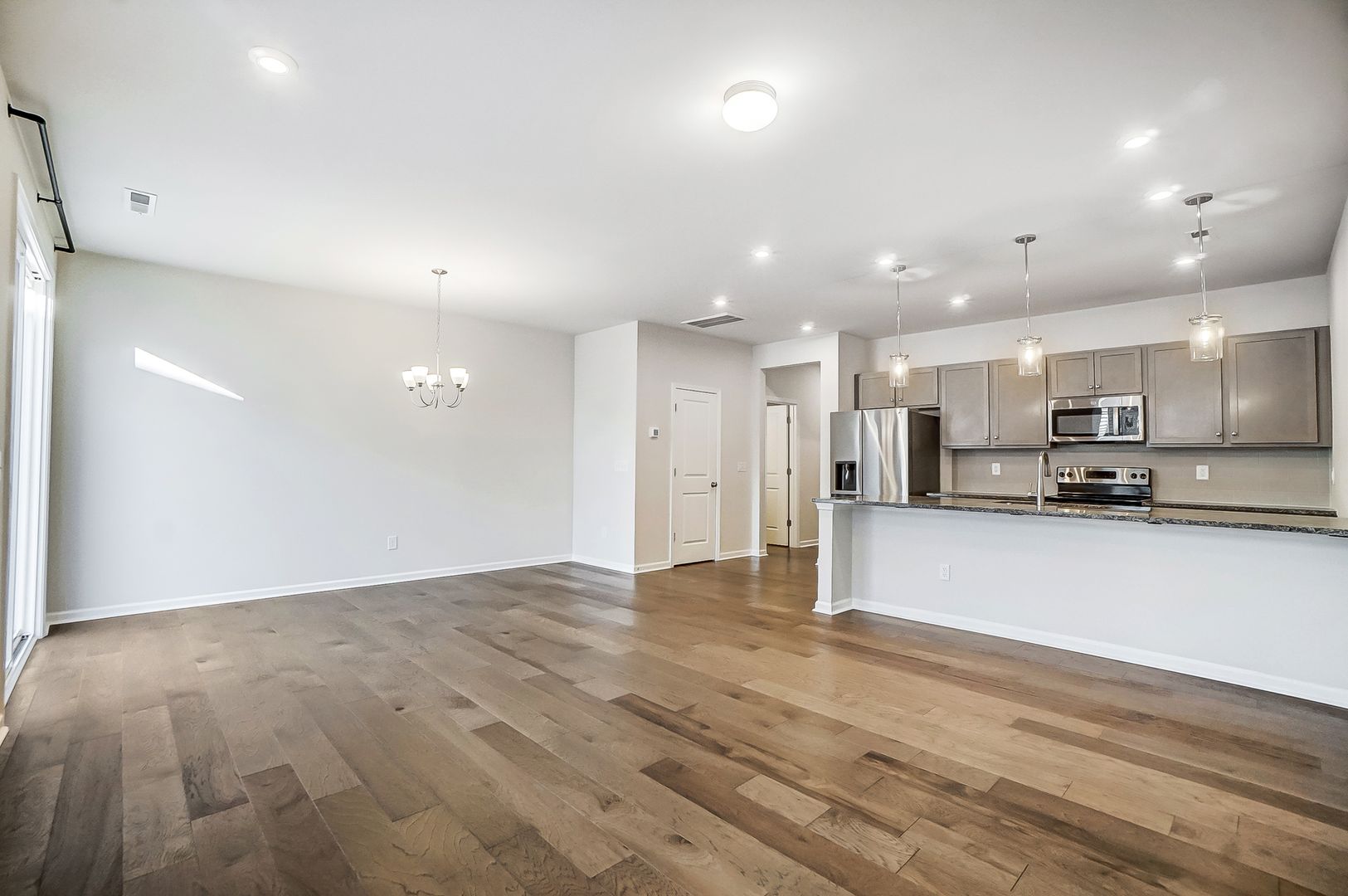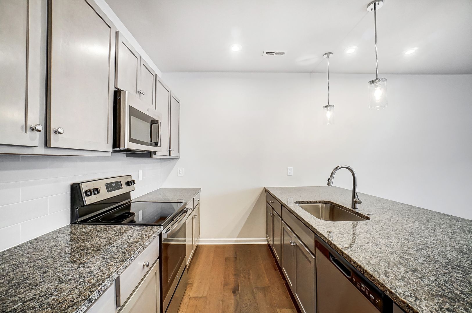 Welcome to Fifteen 15 Cannon! This modern 2-story townhouse, built in 2022, offers 2 bedrooms, 2.5 bathrooms, and a 1-car garage. The entry hall opens to a spacious family room with elegant wide-plank hardwood floors, along with a dining area and kitchen that includes a walk-in pantry and a sliding door leading to a large back patio. The main level also features a breakfast area, a half bath, and a convenient drop zone by the garage.
