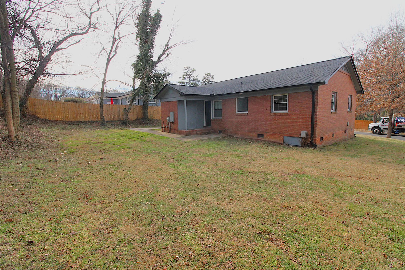 A rear entry leads to a large utility room with washer and dryer connections, providing extra storage and convenience. Outside, enjoy a nice, secluded backyard, perfect for relaxing or entertaining.