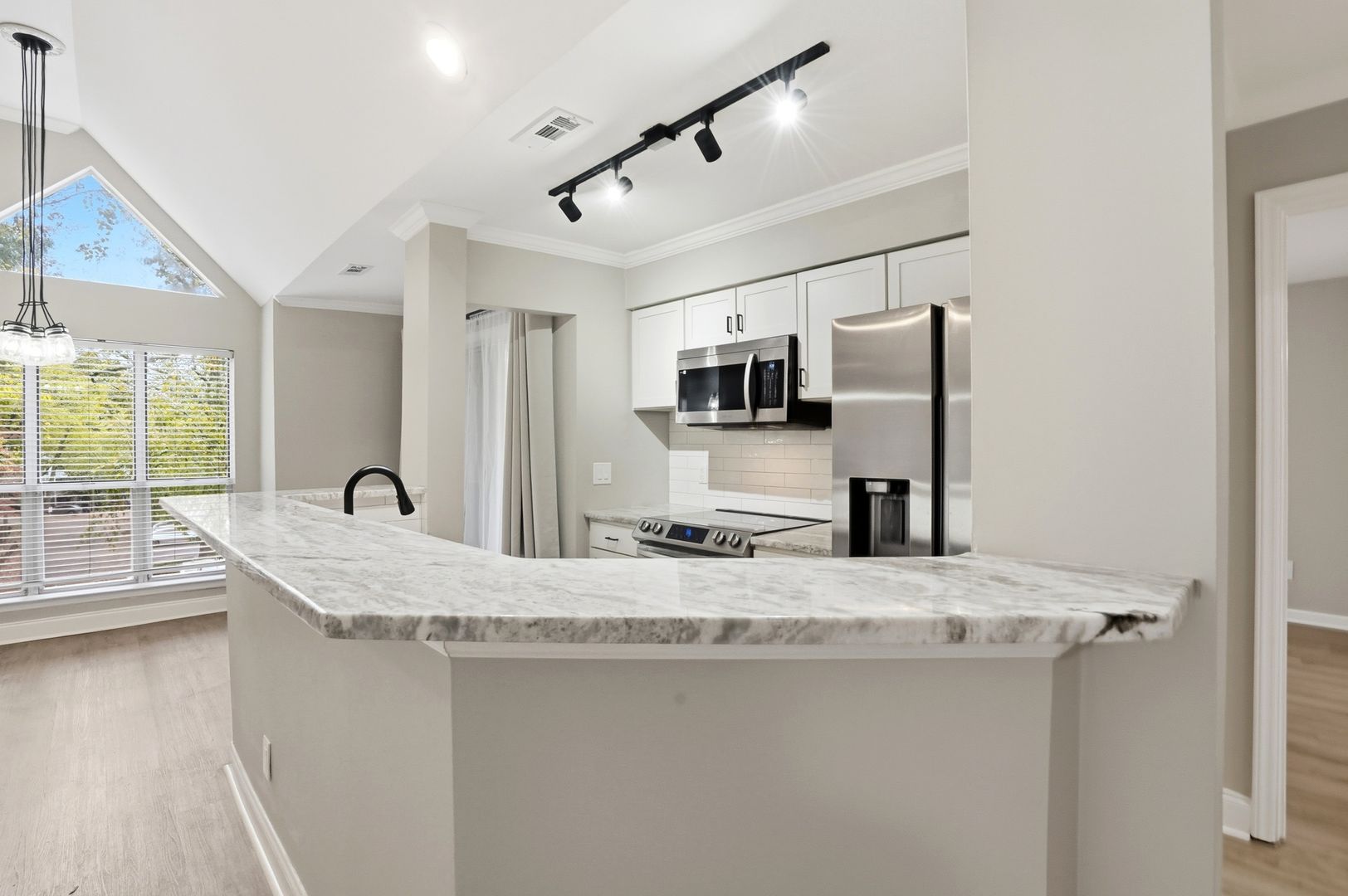 Bright Top-Floor Condo with Vaulted Ceilings & Balcony