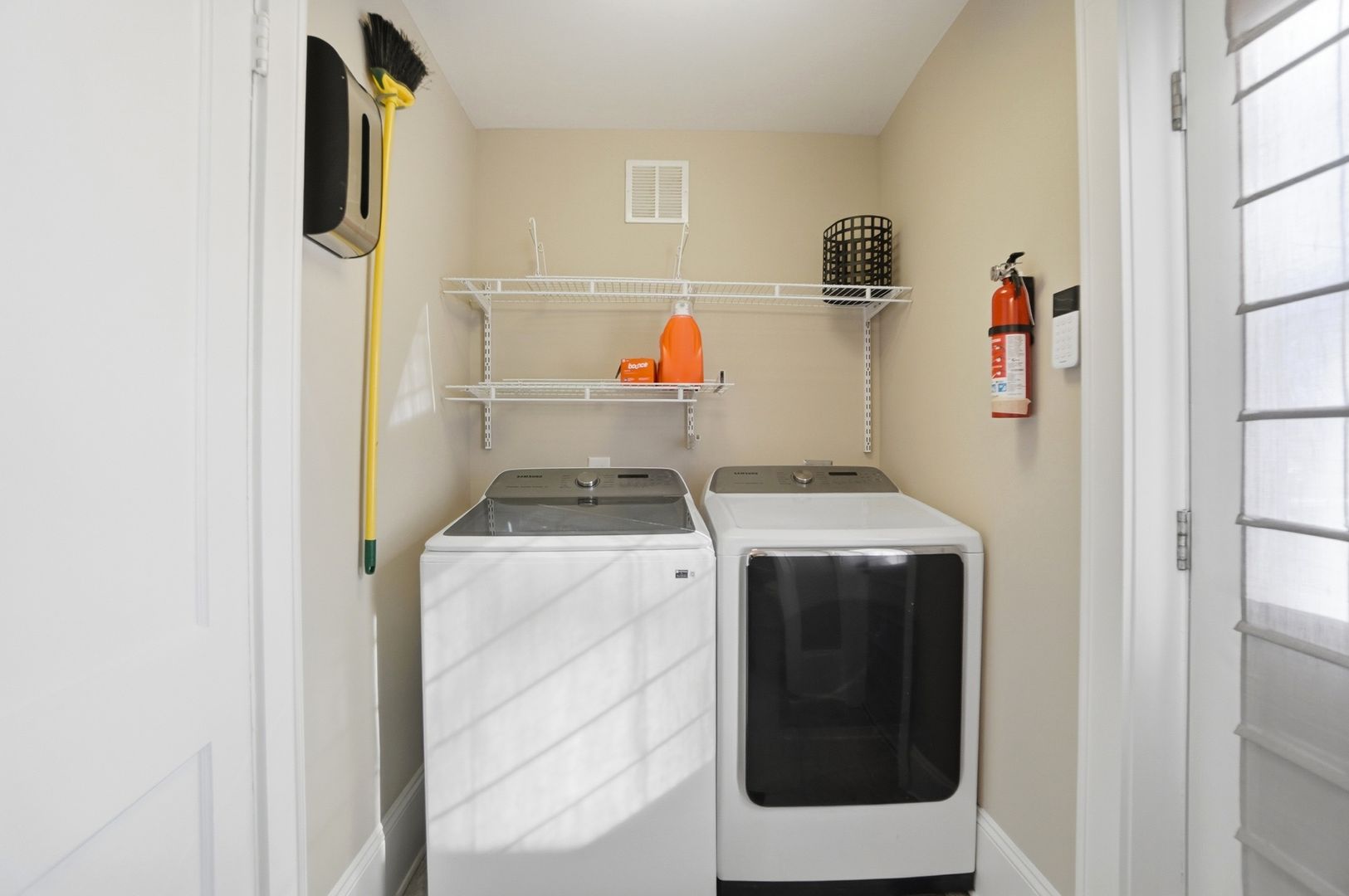 You’re welcomed by a formal dining room and gleaming refinished hardwood floors throughout. The living area features a tiled fireplace with a mounted TV included, creating a warm and inviting space. The renovated kitchen offers abundant cabinet and counter space along with stainless steel appliances, making it ideal for both everyday living and entertaining.