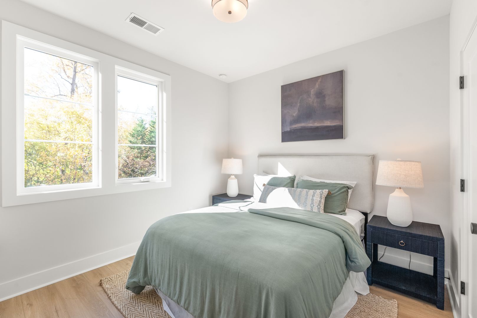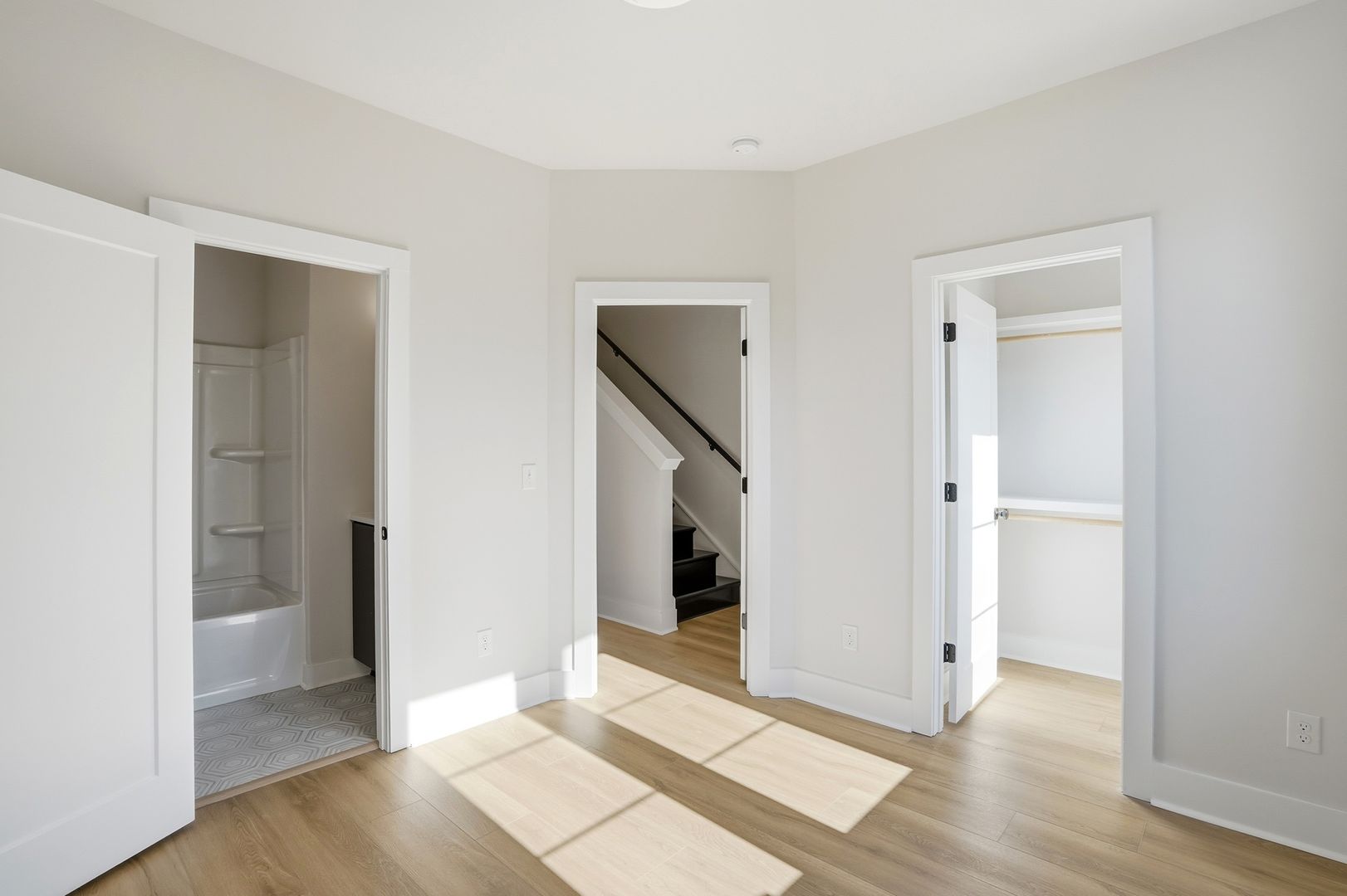 The primary suite upstairs provides a truly elevated retreat, complete with a spacious walk-in closet, double vanity, and a spa-inspired shower. A secondary bedroom with an en-suite bath makes an ideal guest suite. The third-floor bedroom (or office/creative studio) offers privacy and flexibility, complete with its own full bath.