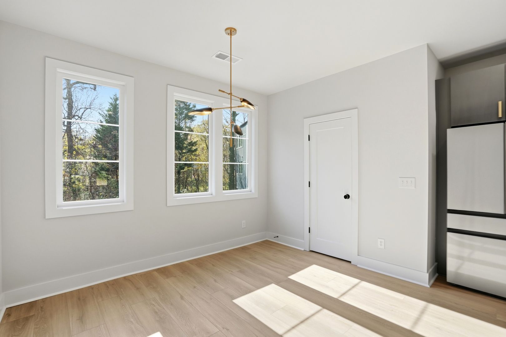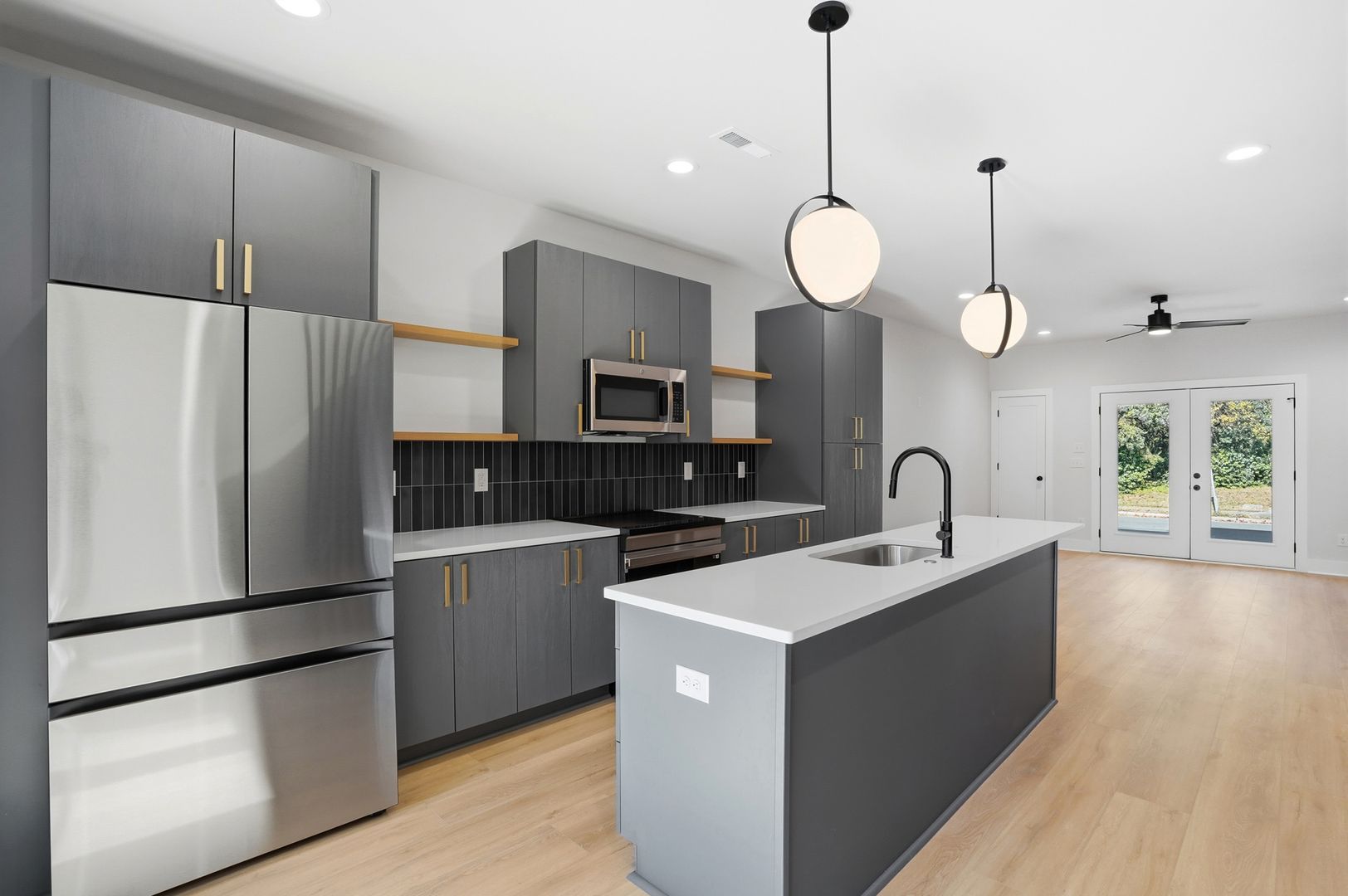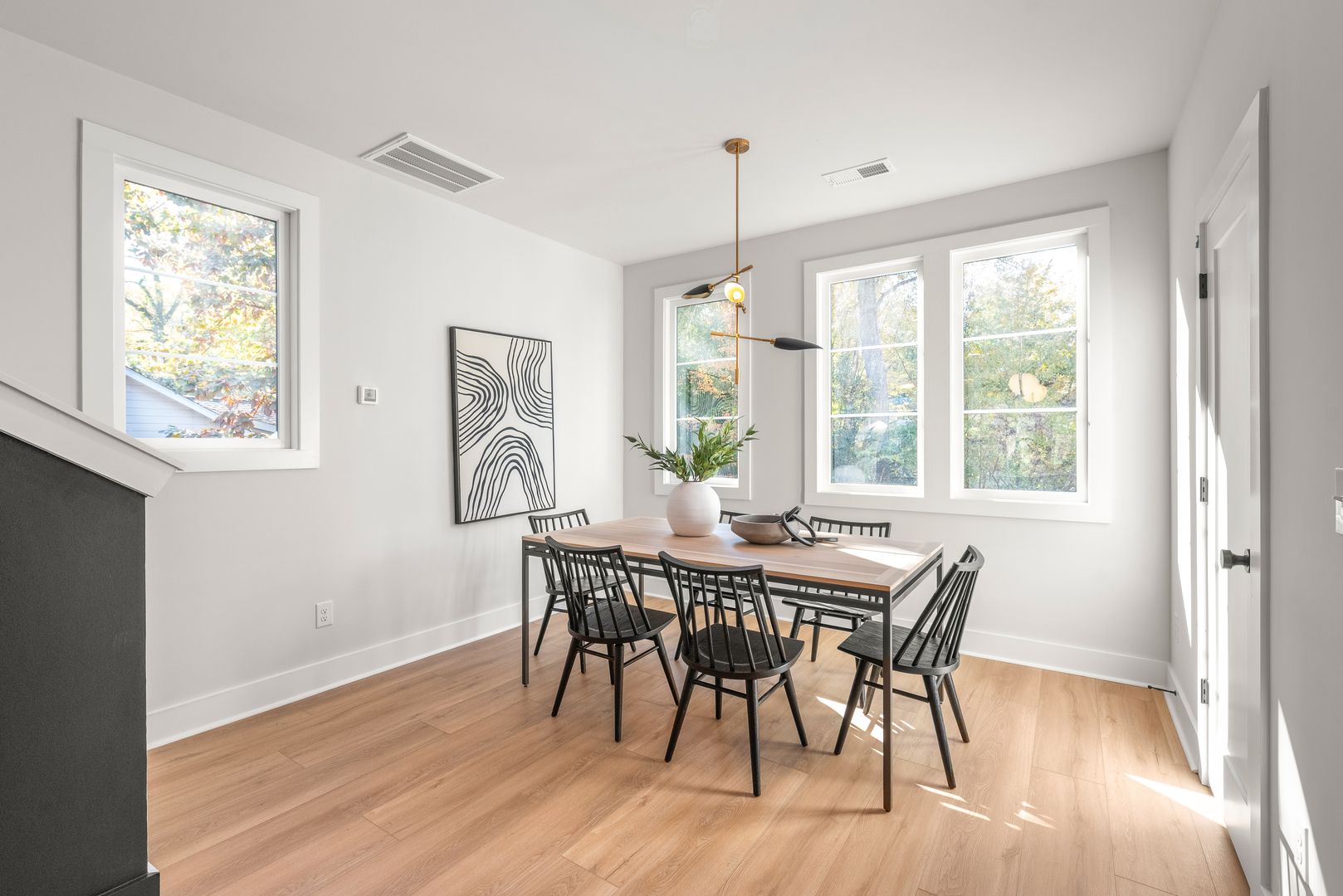Welcome to 1310 Carolyn Drive at Bishop at Briar Creek! A townhome where modern design meets turn-key convenience. The main floor features a seamless layout that brings the living, dining, and kitchen spaces together, ideal for hosting, day-to-day living, and working from home. Layered lighting, modern design elements, and curated details create a polished aesthetic throughout. The kitchen is equipped with modern appliances, an induction stove, beautiful fixtures, and generous counter space.