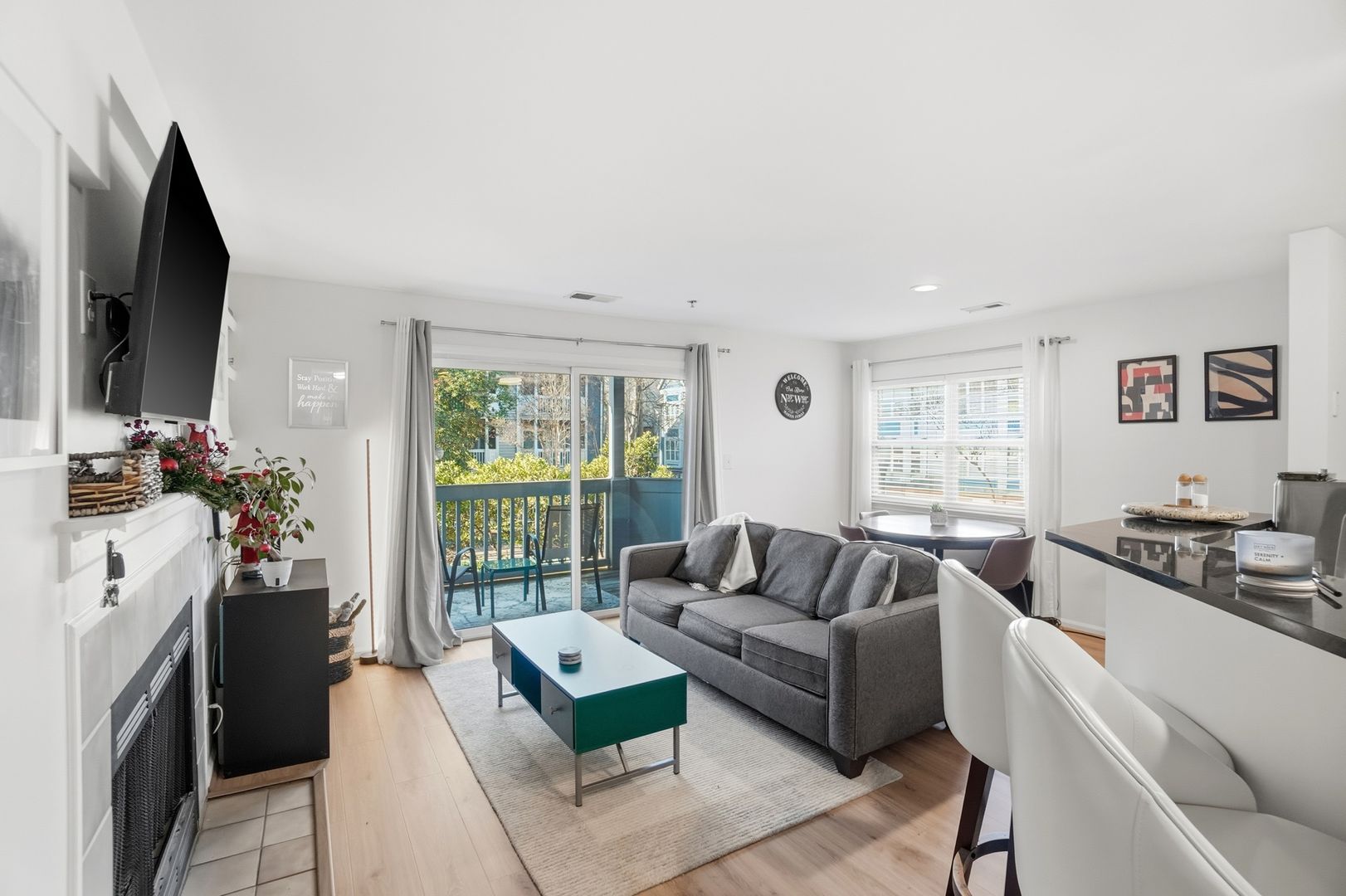 Experience Uptown living in Charlotte’s vibrant Fourth Ward! This stylish end-unit condo offers exceptional privacy, convenience, and charm. The open floor plan features a cozy fireplace, built-in bookshelves, and a spacious covered balcony overlooking the pool and beautifully landscaped common areas with city views.